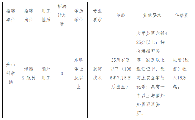 - 2022年舟山引航站公開(kāi)招聘編外工作人員公告
