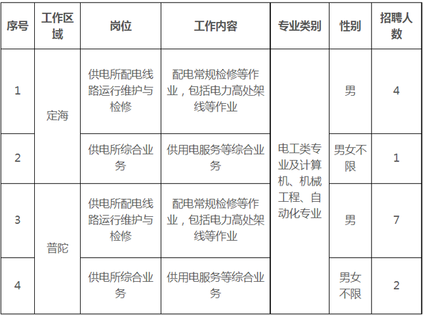 舟山市啟明供電服務(wù)有限公司2022年招聘啟事
