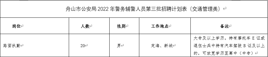 1.舟山市公安局2022年交通管理類(lèi)警務(wù)輔助人員第三批招聘計(jì)劃表