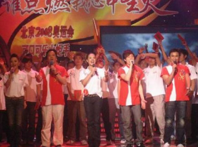 徐寧與蔡大生等一起合唱奧運(yùn)歌曲《點(diǎn)燃心中圣火》
