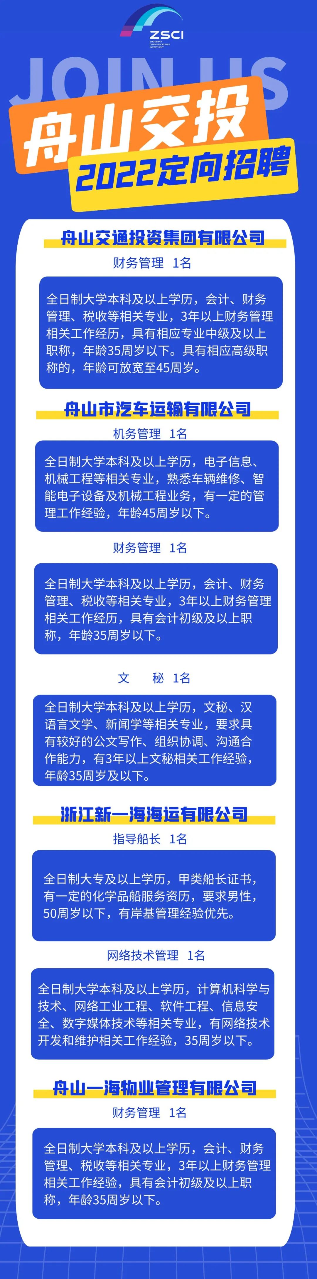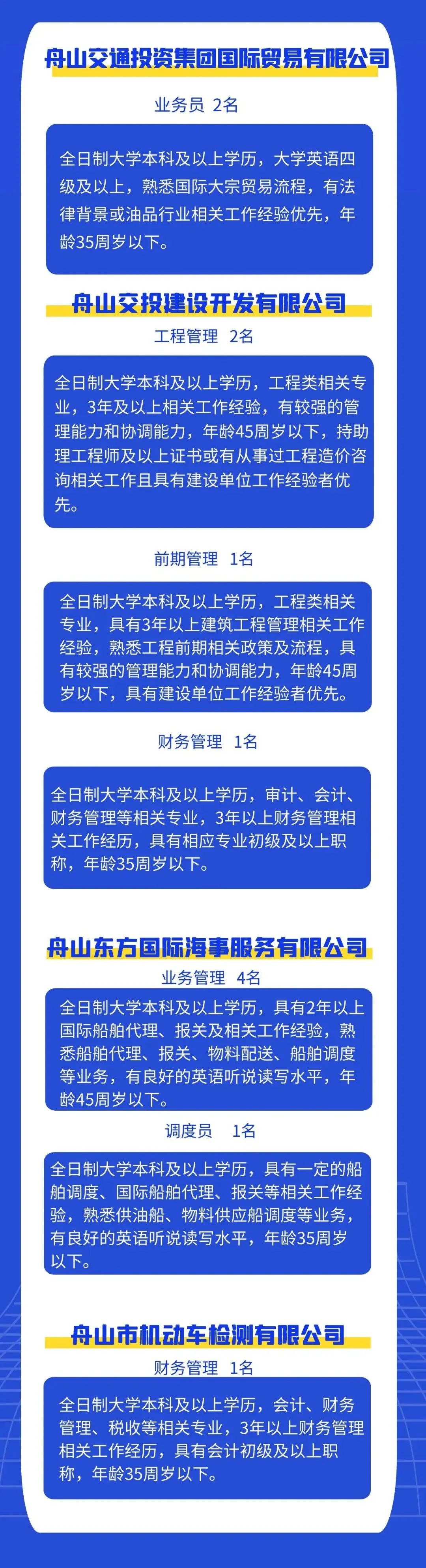 舟山交通投資集團有限公司人力資源部李女士,電話:0580-2167923。