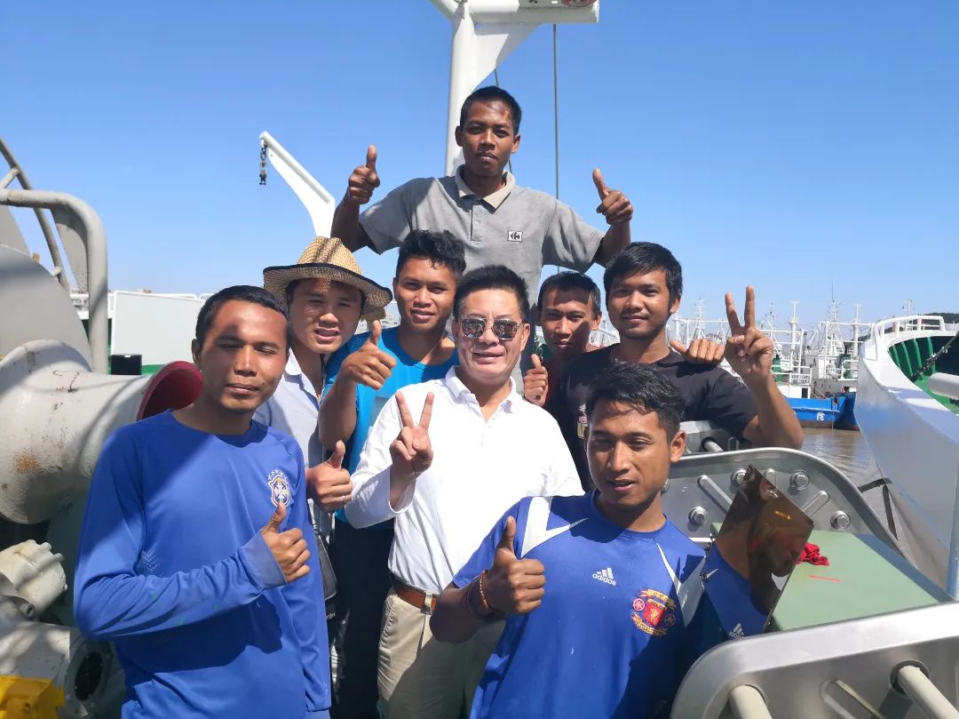 舟山遠(yuǎn)洋漁船帶著慧峰公司生產(chǎn)的魷釣機(jī)遠(yuǎn)征太平洋(中為倪海鷹)
