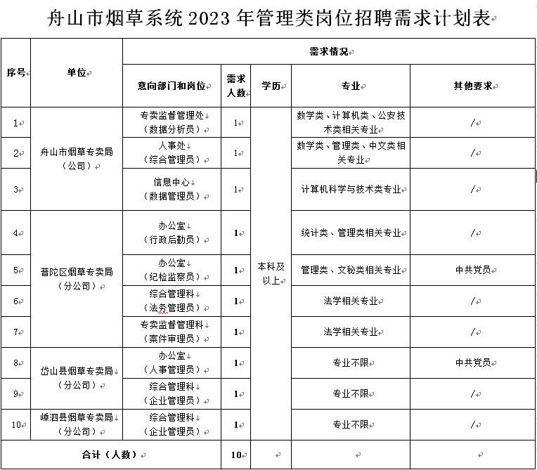 附件:舟山市煙草系統(tǒng)2023年管理類崗位招聘需求計(jì)劃表.docx