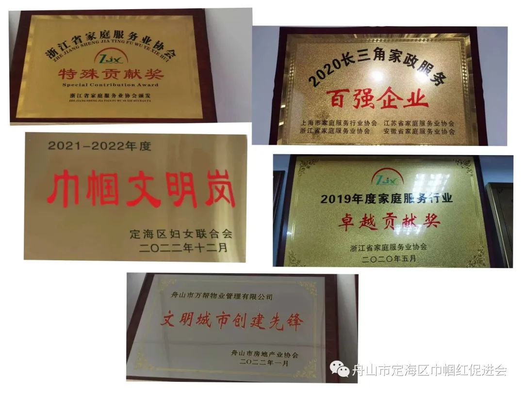 在作為城市管理延伸部分的物業(yè)服務(wù)領(lǐng)域,她始終堅(jiān)持以黨建引領(lǐng),立足于包括小區(qū)兼合式黨支部、業(yè)主委員會(huì)、物業(yè)公司三位一體的紅色物業(yè)聯(lián)盟,助力提高服務(wù)品質(zhì),服務(wù)于千家萬戶,成功創(chuàng)建了浙江省首批紅色物業(yè)小區(qū)項(xiàng)目,在管項(xiàng)目中,有兩個(gè)項(xiàng)目已獲批紅色物業(yè)項(xiàng)目。目前,由其創(chuàng)建的舟山市萬幫物業(yè)公司已榮獲浙江省 AAA級(jí)信用等極企業(yè)(注“AAA級(jí)系最高級(jí))、舟山市大學(xué)生就業(yè)見習(xí)基地、定海區(qū)巾幗示范基地、守合同、重信用單位、誠(chéng)信企業(yè)等榮譽(yù)稱號(hào)。