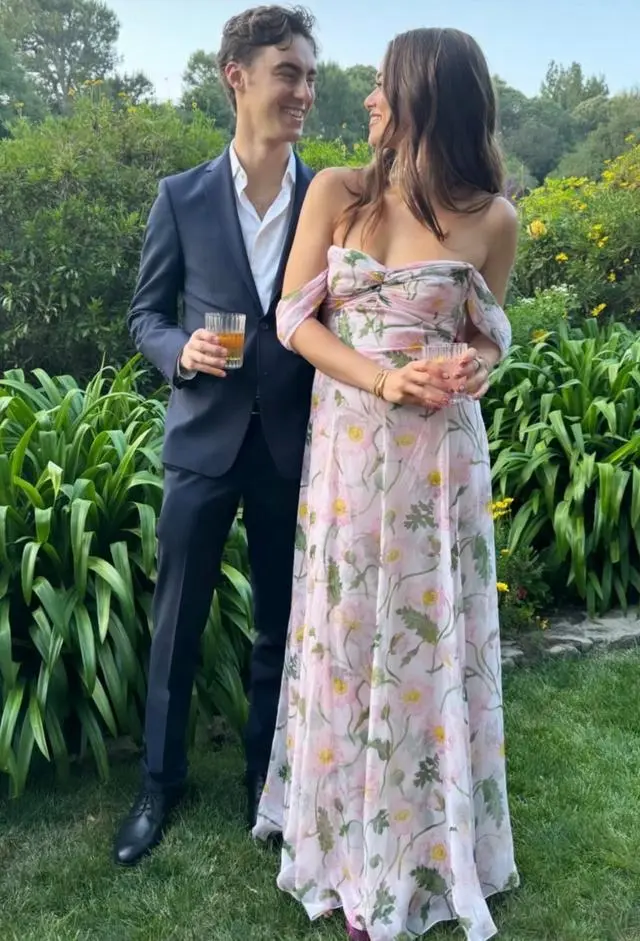 鄧文迪的大女兒和高富帥男朋友也來(lái)了,只見(jiàn)她女兒同樣穿鮮花類禮服,男朋友則西裝革履,還蠻般配的。