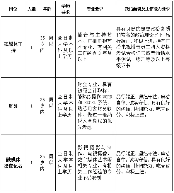 舟山市傳媒集團有限公司因事業(yè)發(fā)展需要,面向社會公開招聘3名工作人員(集團聘用性質(zhì))