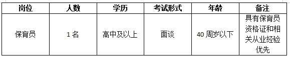 因舟山幼兒園工作需要,現(xiàn)公開向社會招聘保育員1名。