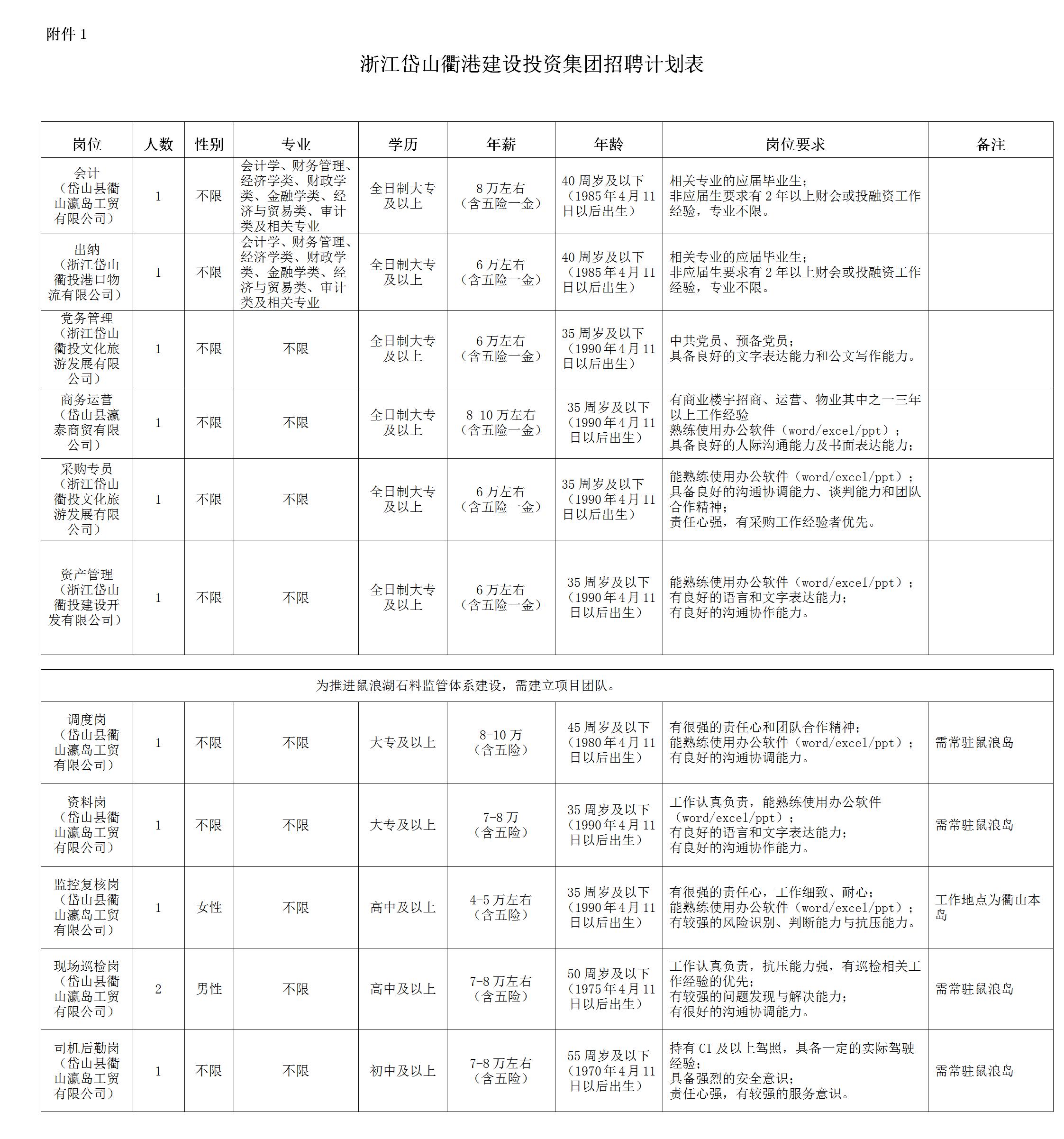 - 浙江岱山衢港建設(shè)投資集團(tuán)招聘公告